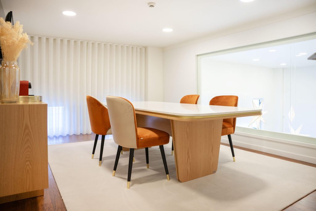 O Projeto Aveiro é cons6tuído por 2 quartos! A cliente procurou-nos para desenvolver o projeto para os quartos dos seus filhos. Venha descobrir ao pormenor cada quarto! O Quarto A, surpreende-nos com a sua cabeceira e sommier estofados em tom lilás,com rebordo roxo, criando dinâmica na peça. Este tom que certamente nos faz lembrara lavanda, […]